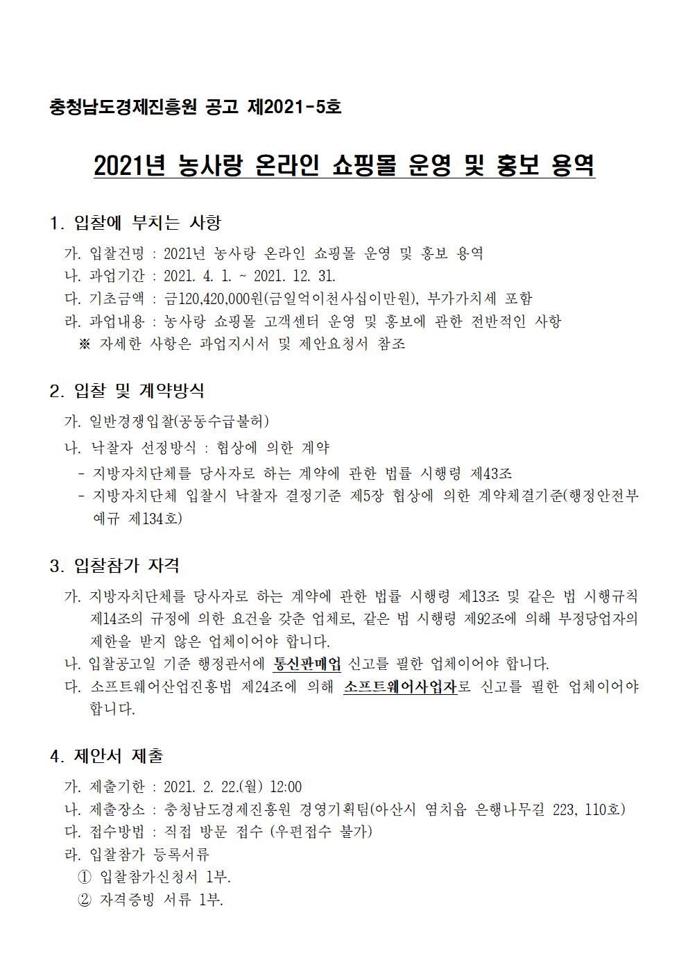 | 2021년 농사랑 온라인 쇼핑몰 운영 및 홍보 용역 모집공고 |
