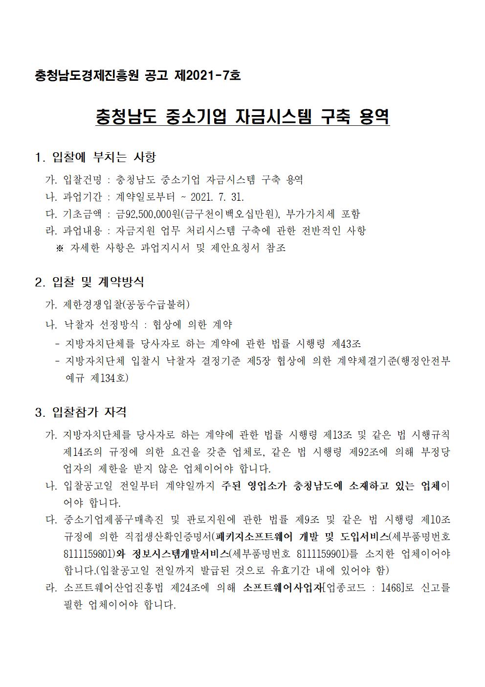 | 충청남도 중소기업 자금시스템 구축 용역 입찰 공고 |
