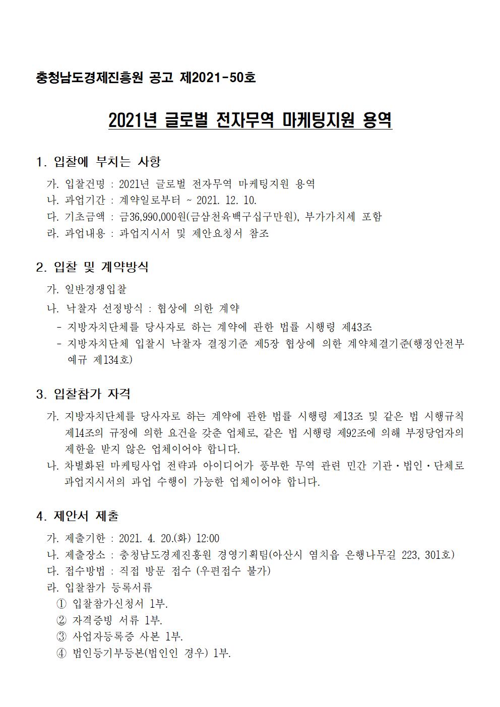 | 2021년 글로벌 전자무역 마케팅지원 용역 입찰 공고 |