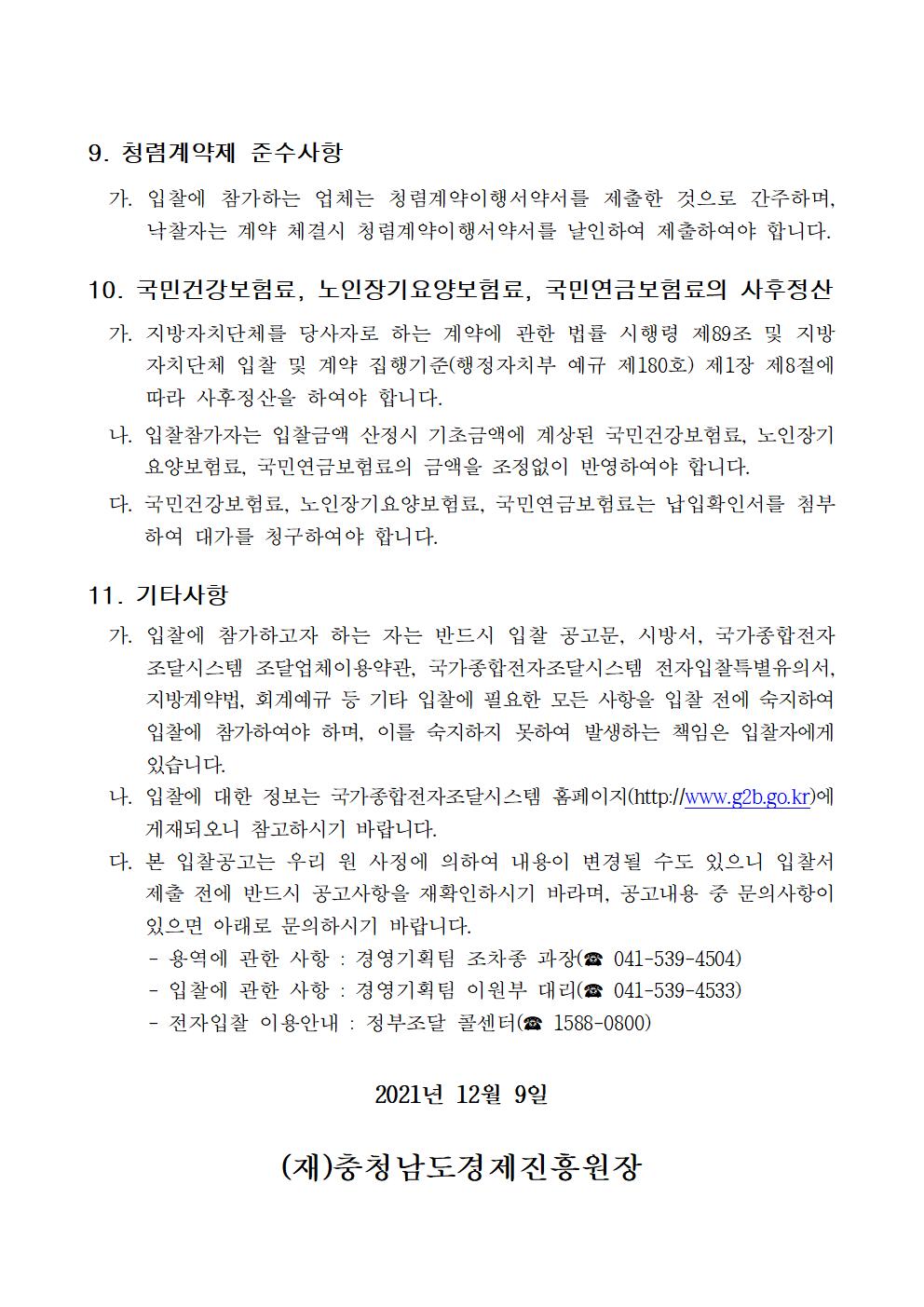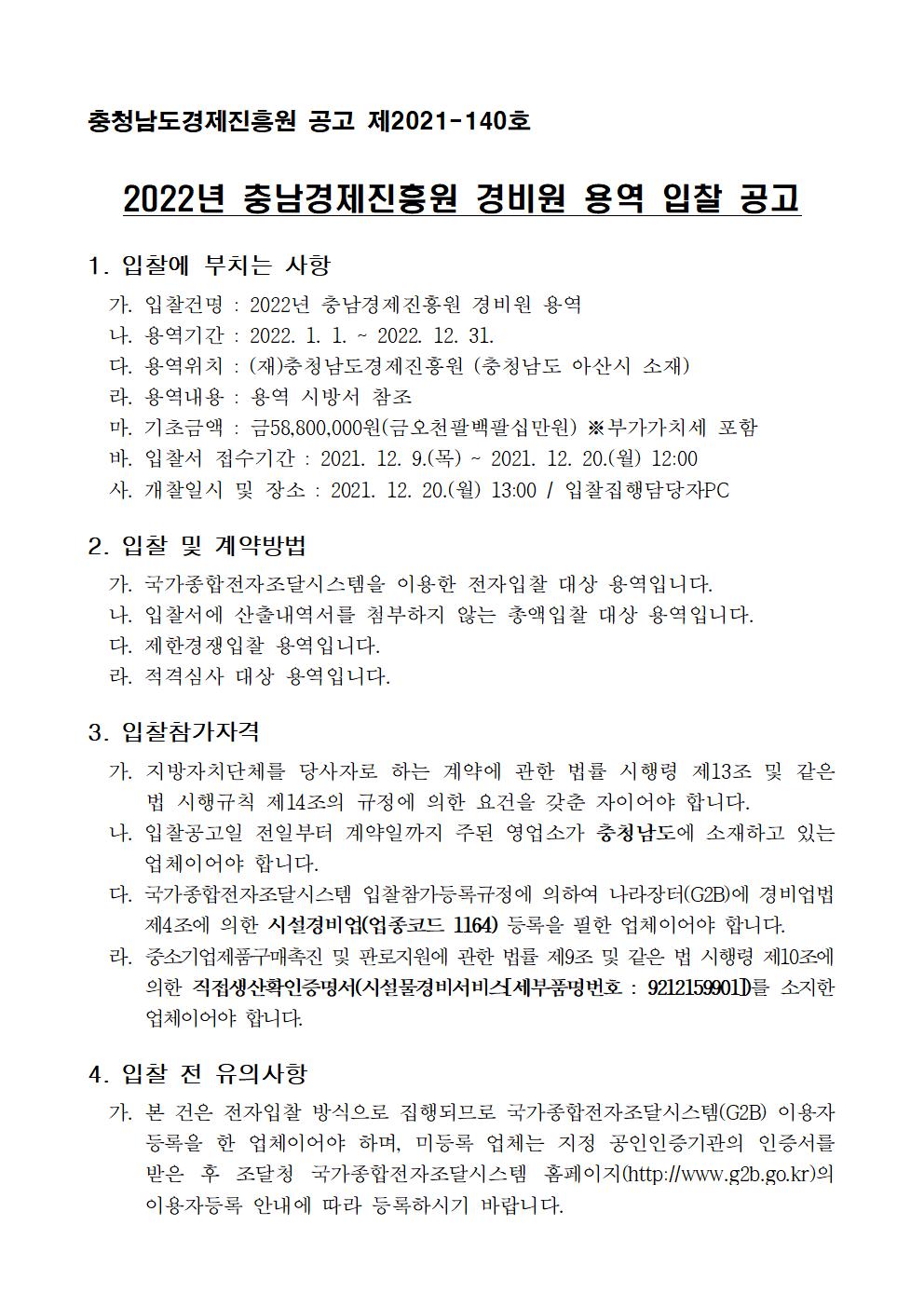 | 2022년 충남경제진흥원 경비원 용역 입찰 공고 |