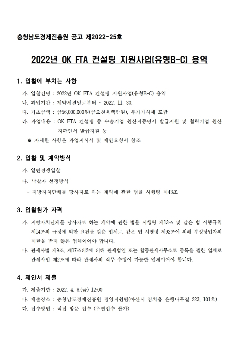 | 2022년 OK FTA 컨설팅 지원사업(유형B-C) 용역 |