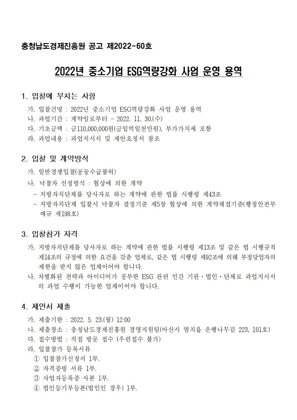 | 2022년 중소기업 ESG역량강화사업 용역(재공고) |