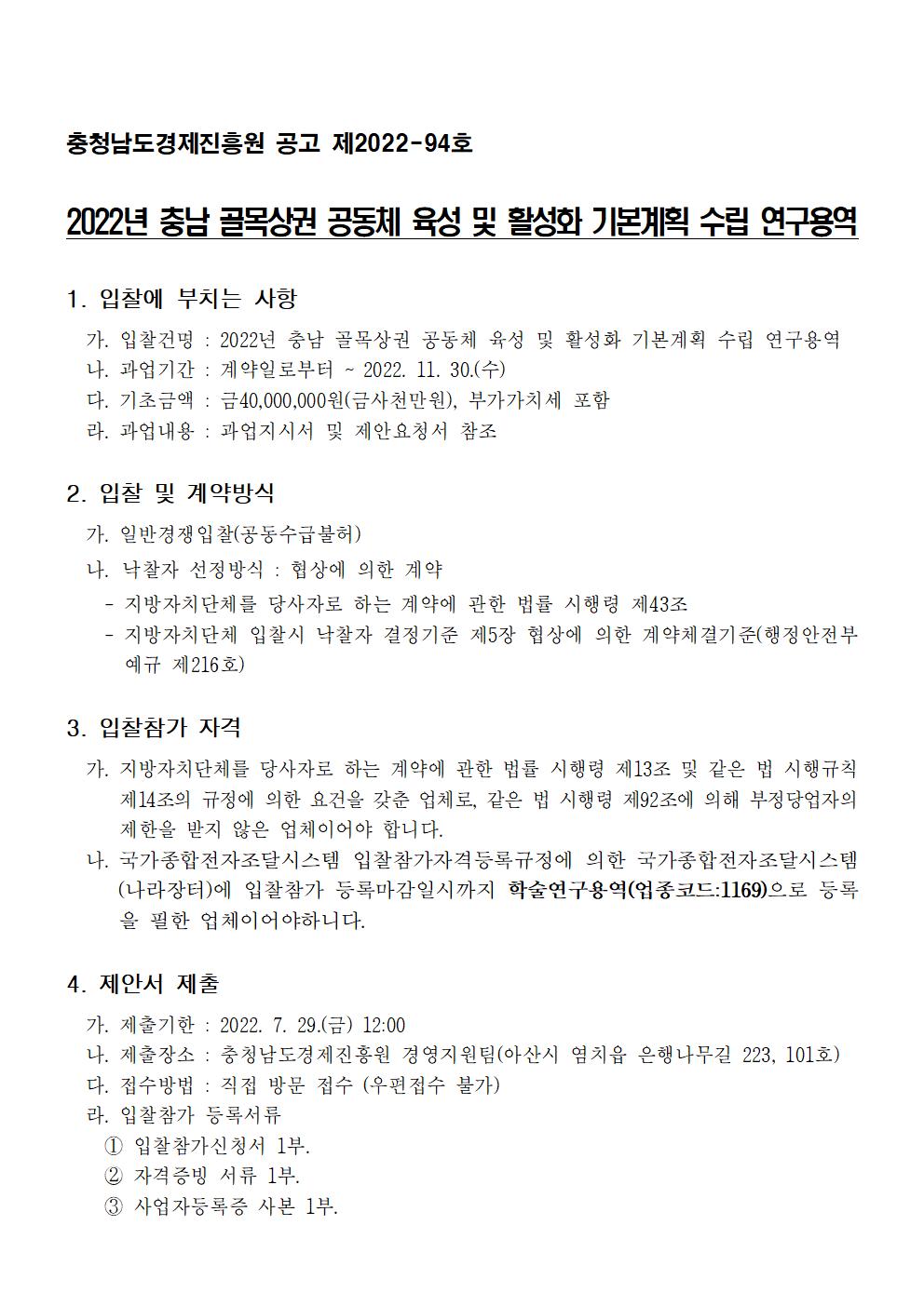 | 2022년 골목상권 공동체 육성 및 활성화 기본계획 수립 연구용역 |