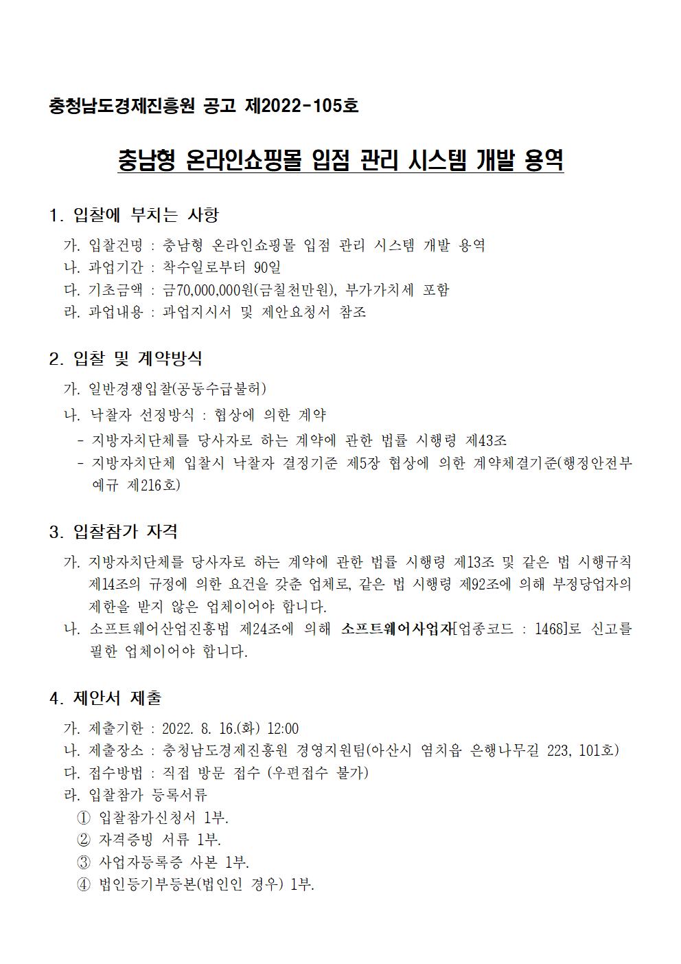 | 충남형 온라인쇼핑몰 입점 관리 시스템 개발 |