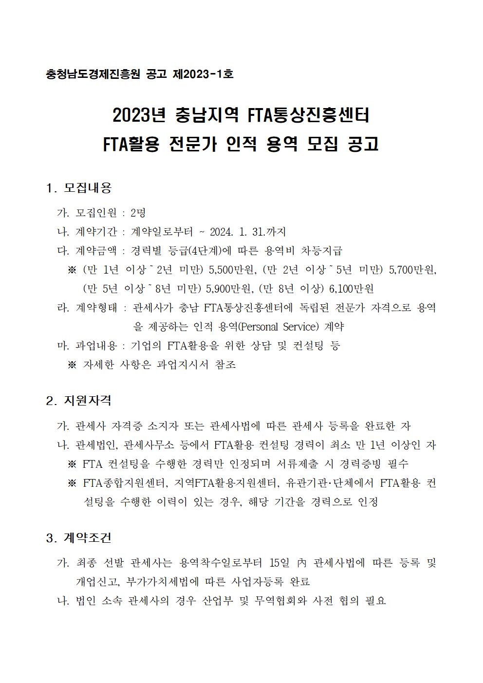 | 2023년 충남지역 FTA통상진흥센터 FTA활용 전문가 인적용역 모집 |