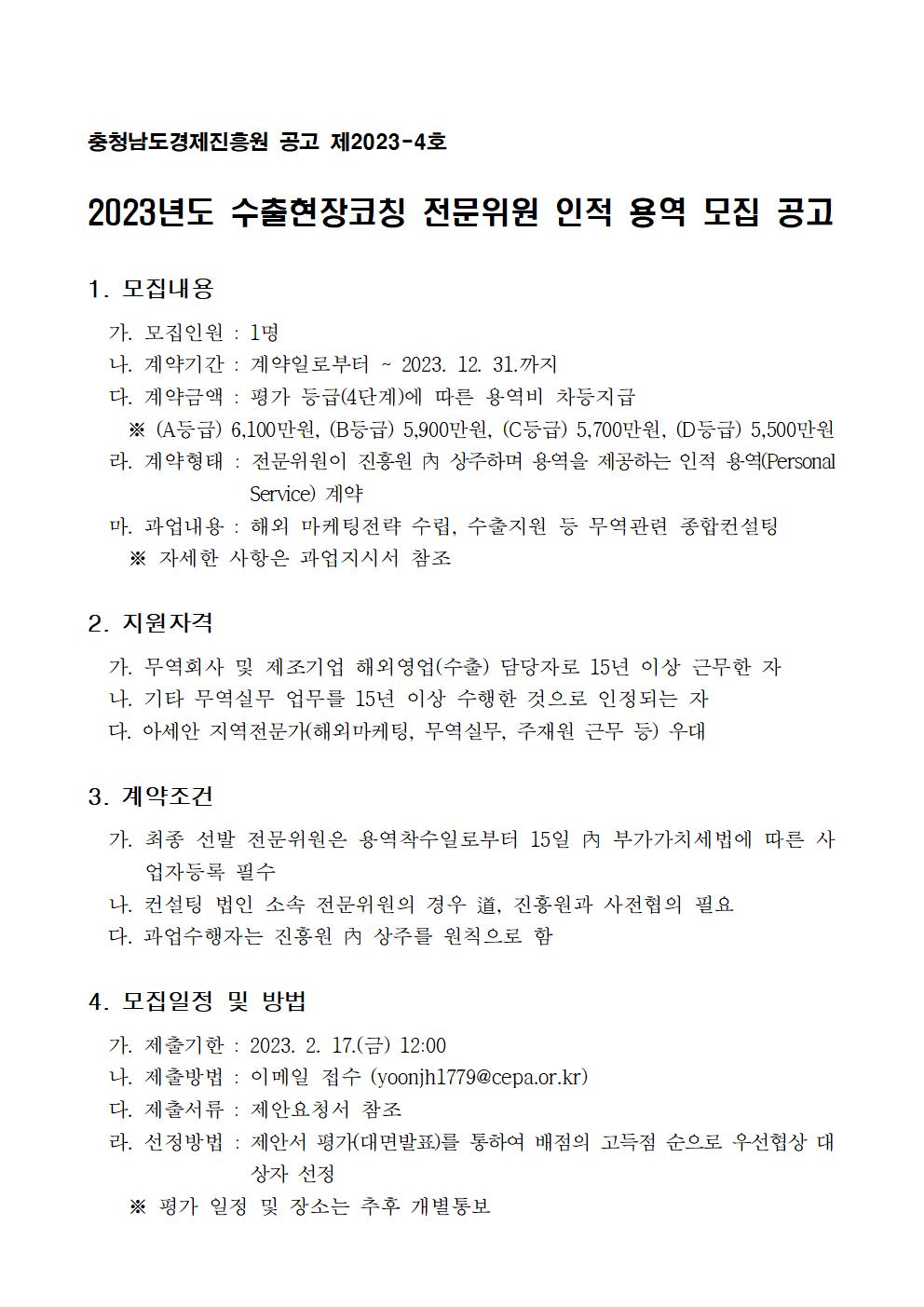 | 2023년도 수출현장코칭 전문위원 인적용역 모집 |