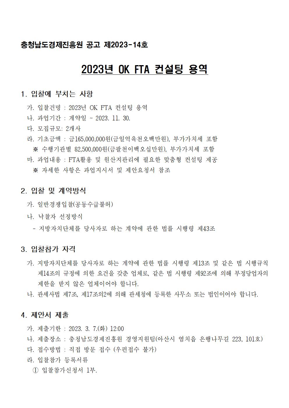 | 2023년도 OK FTA 컨설팅 사업 용역 모집 공고 |