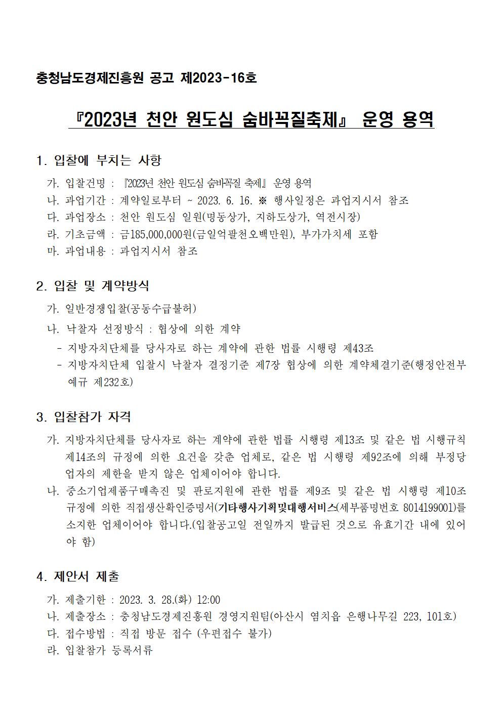 | 2023년 천안 원도심 숨바꼭질축제 용역 |