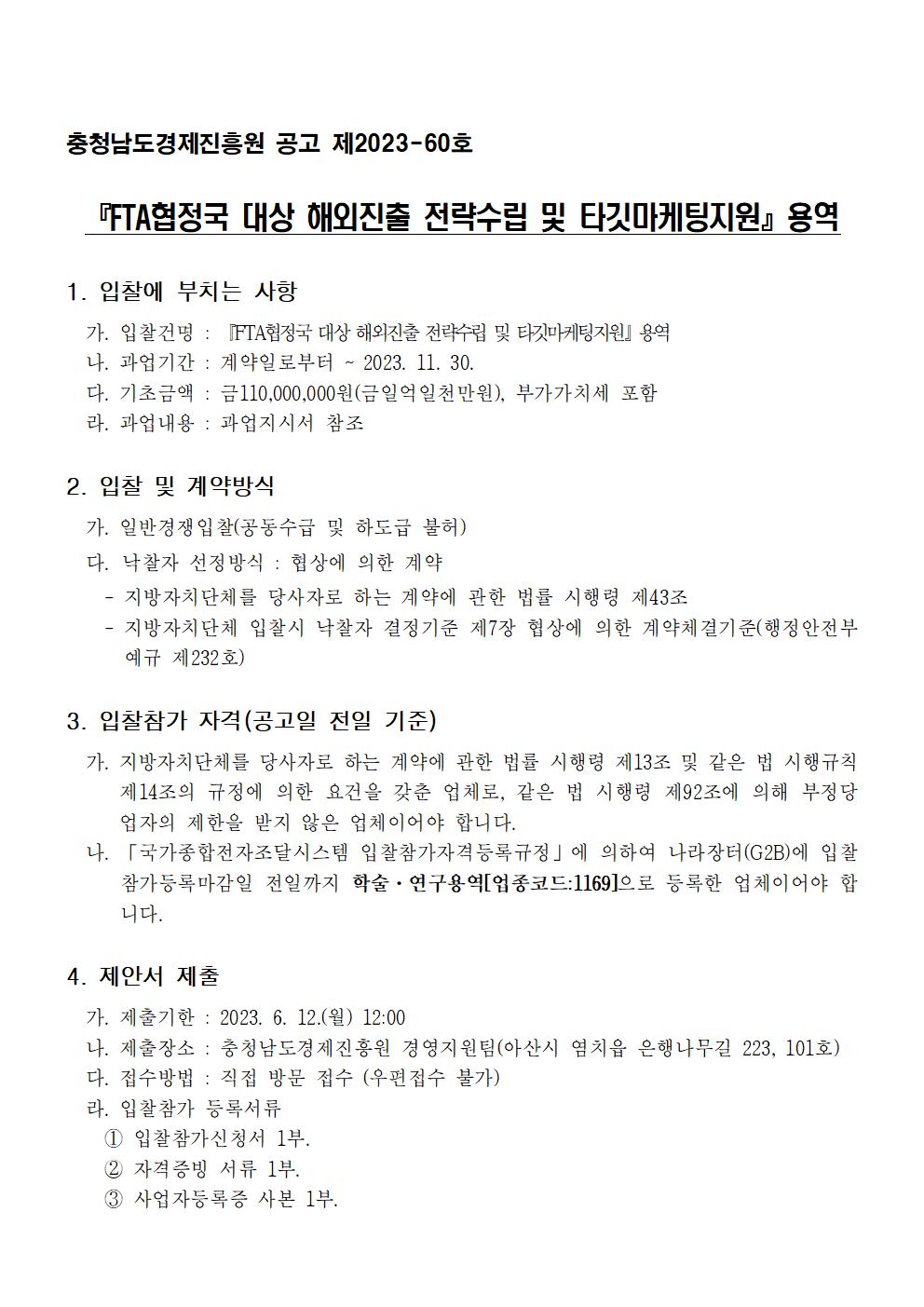 | FTA 협정국 대상 해외진출 전략수립 및 타깃마케팅지원 용역 |