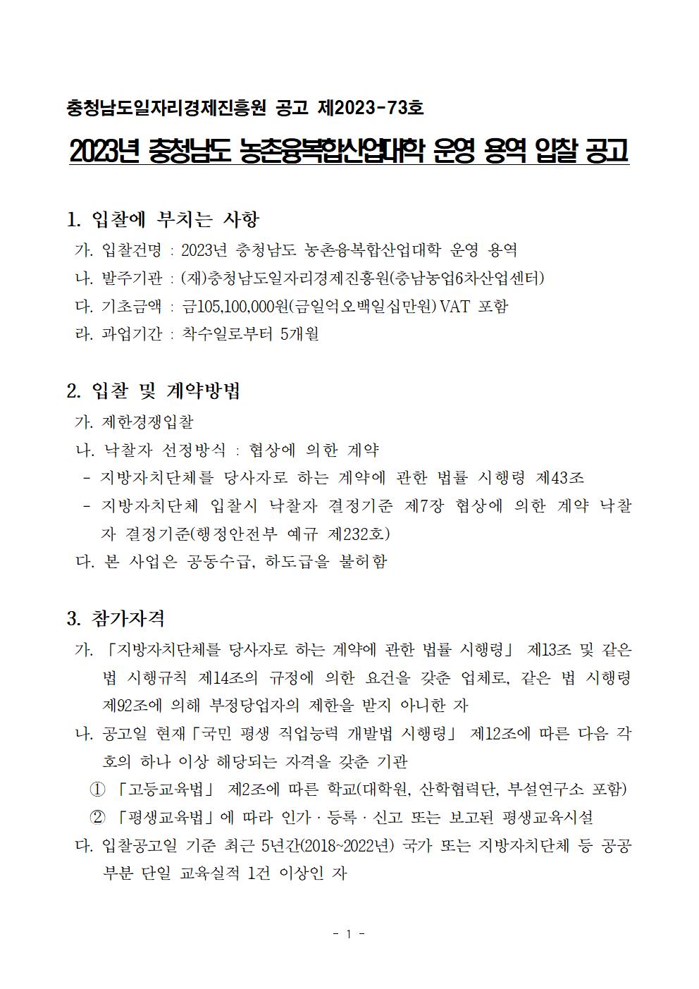 | 2023년 충남 농촌융복합산업 대학 운영 용역 |