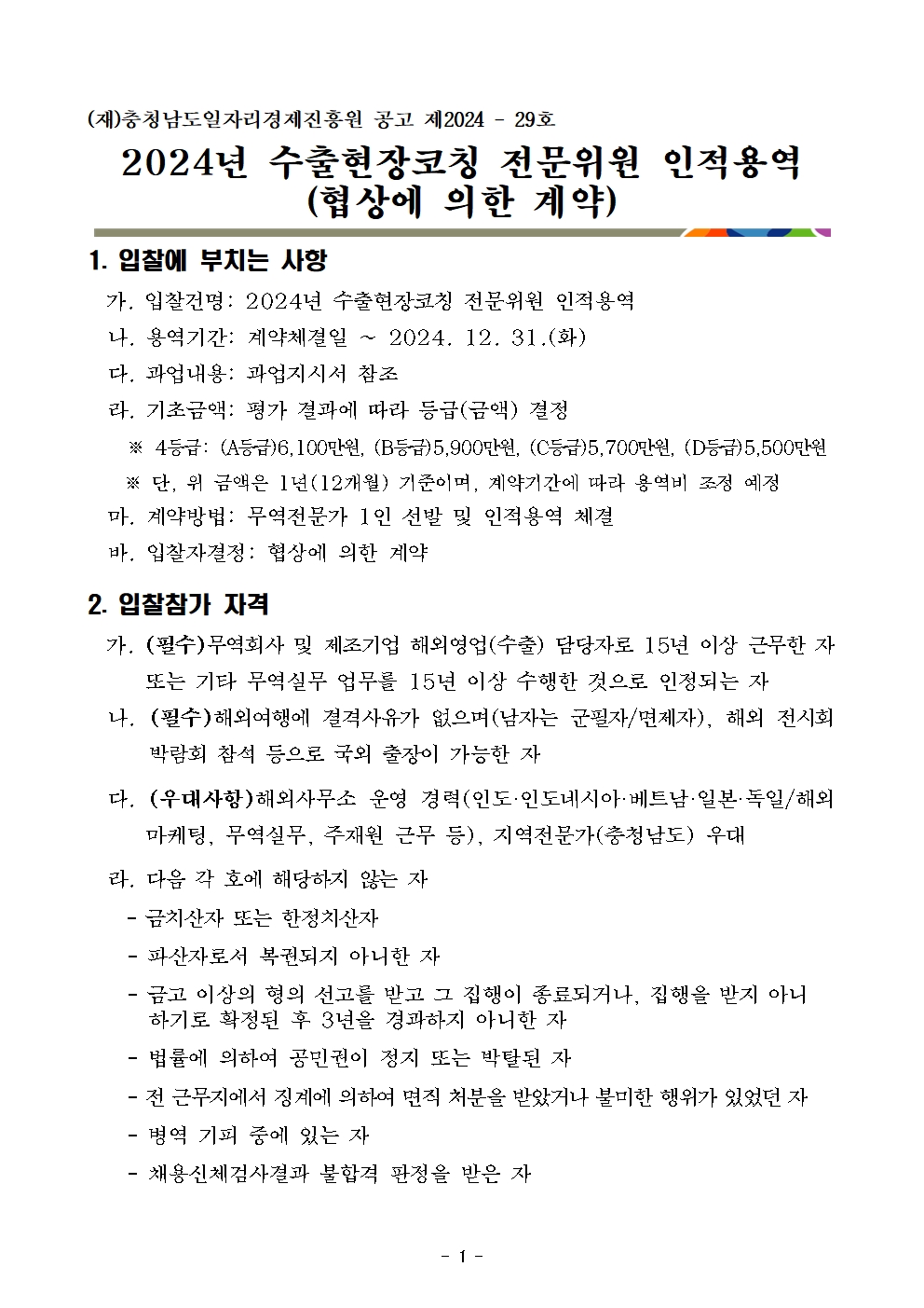 | 2024년 수출현장코칭 전문위원 인적용역 |