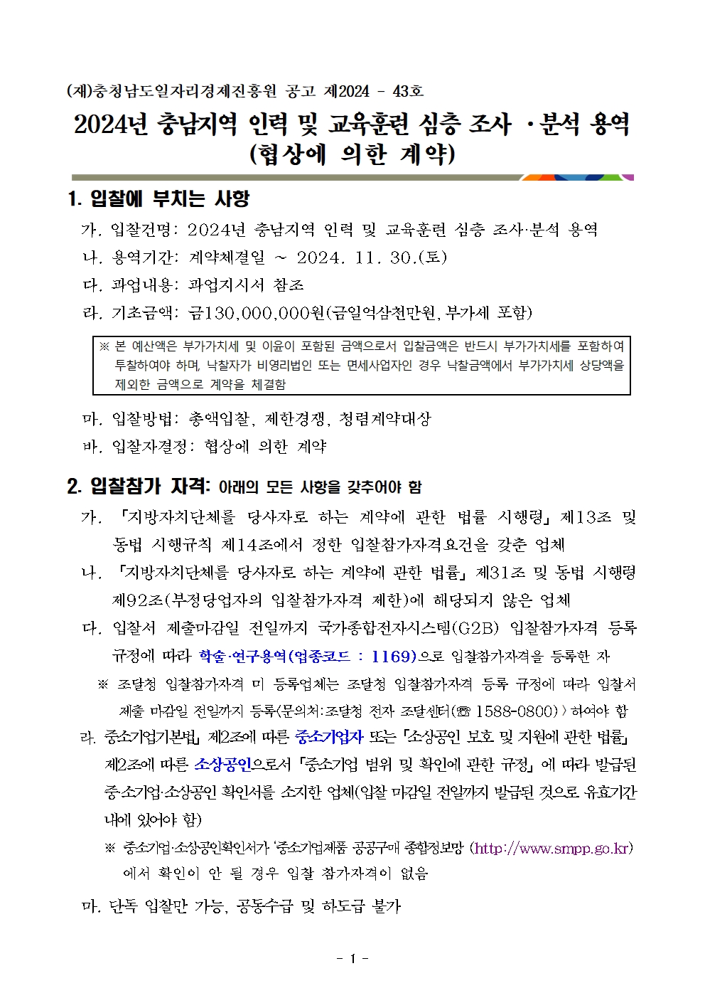 | 2024년 충남지역 인력 및 교육훈련 심층 조사 ·분석 용역 |