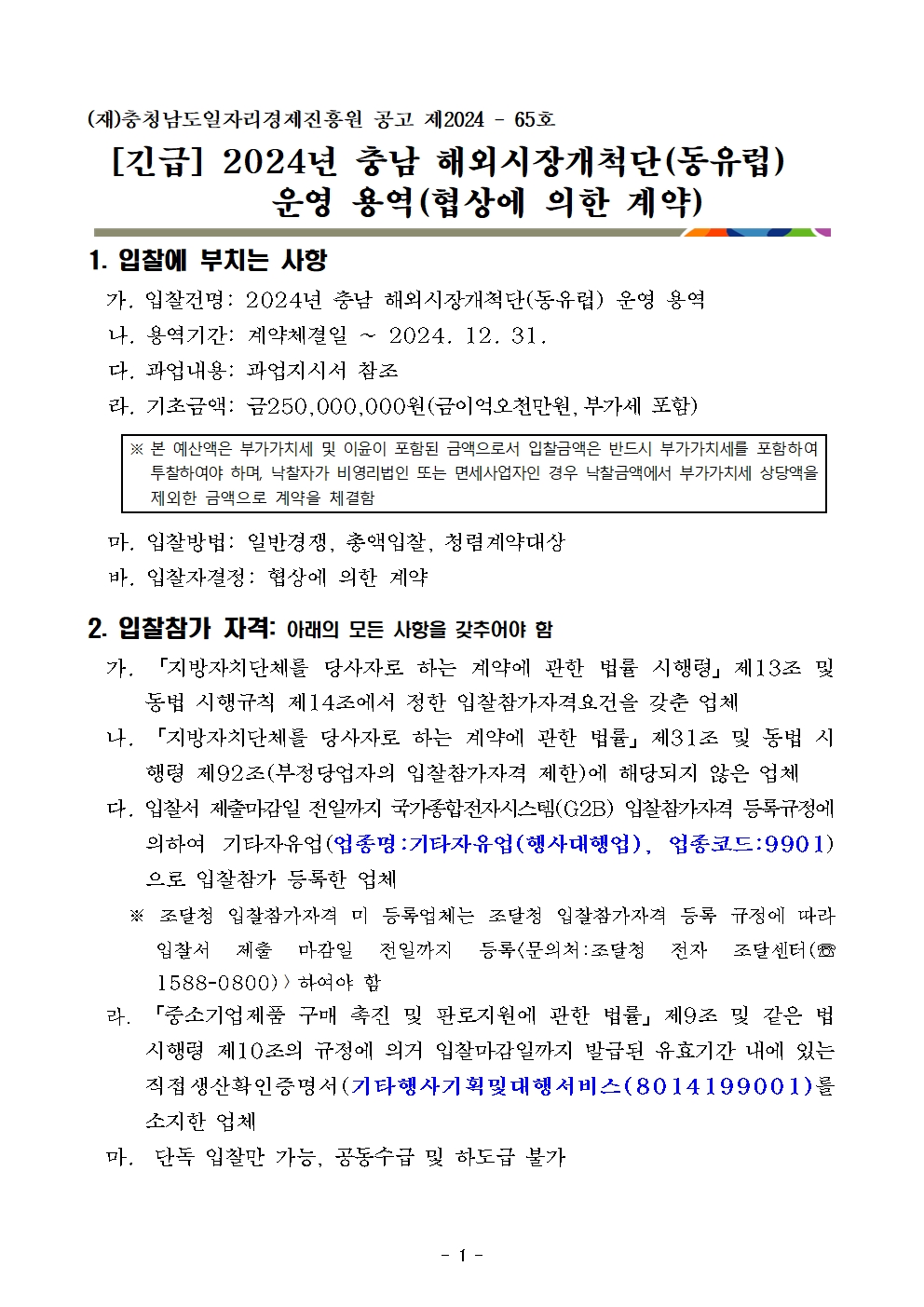 | 2024년 충남 해외시장개척단(동유럽) 운영 용역 |