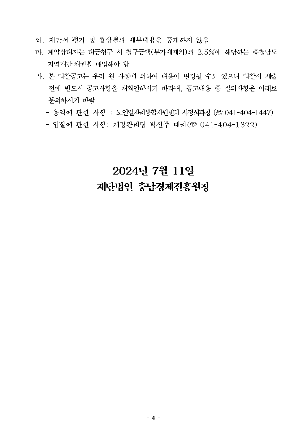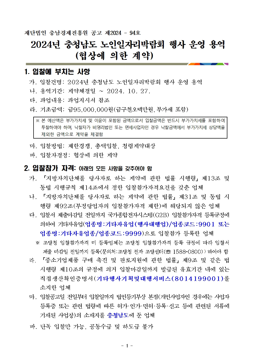 | 2024년 충청남도 노인일자리박람회 행사 운영 용역 입찰 공고 |