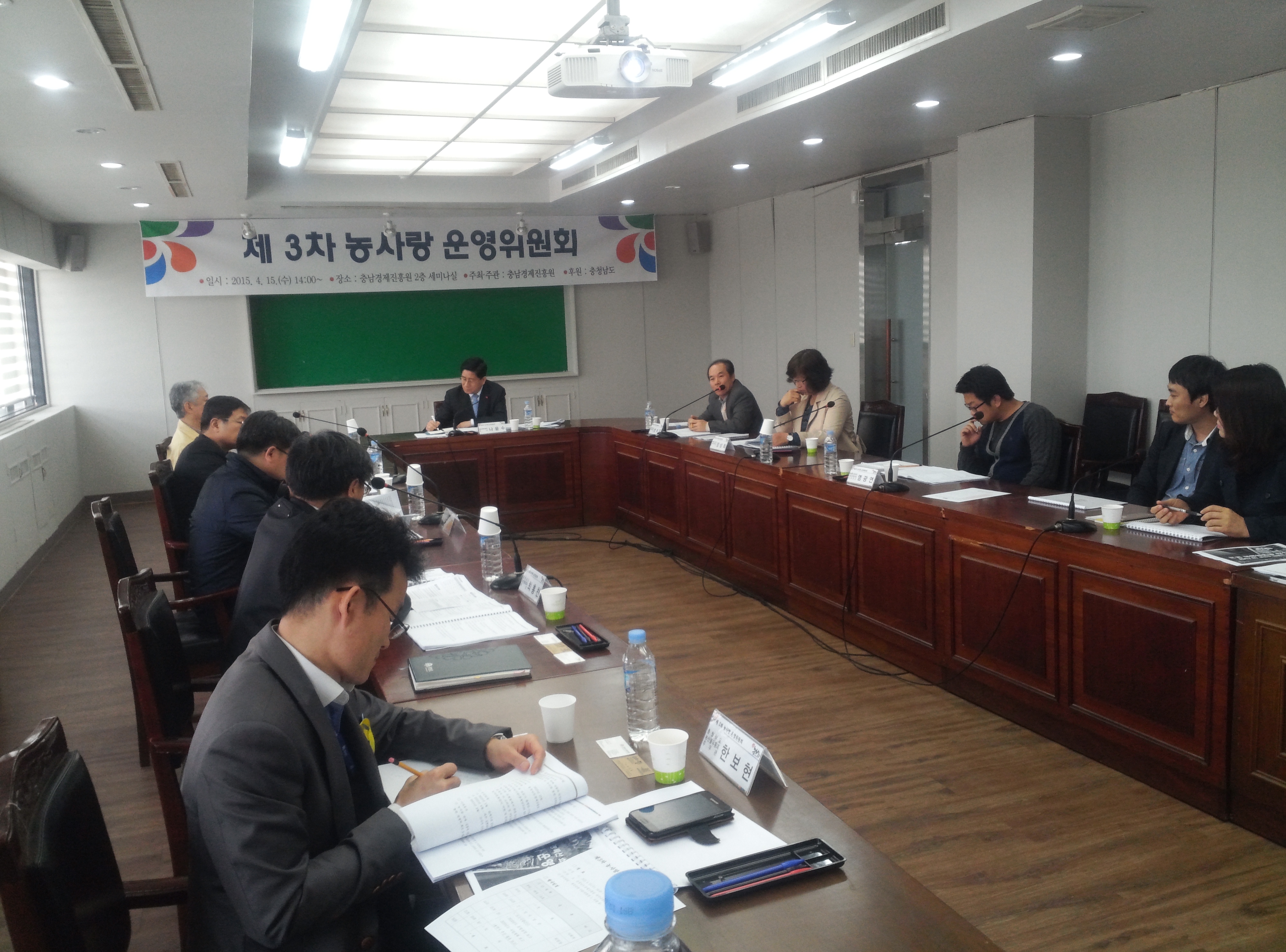 ![]() O 행사명 : 제3회 농사랑 운영위원회 개최 O 때 곳 : 2015. 4. 15.(수), 14:00 ~ 16:00, 충청남도경제진흥원 세미나실