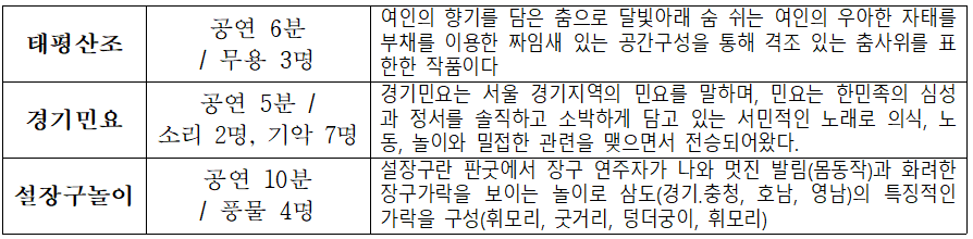 2. 식전공연: 부여군충남국악단(3개의 세부공연으로 구성)