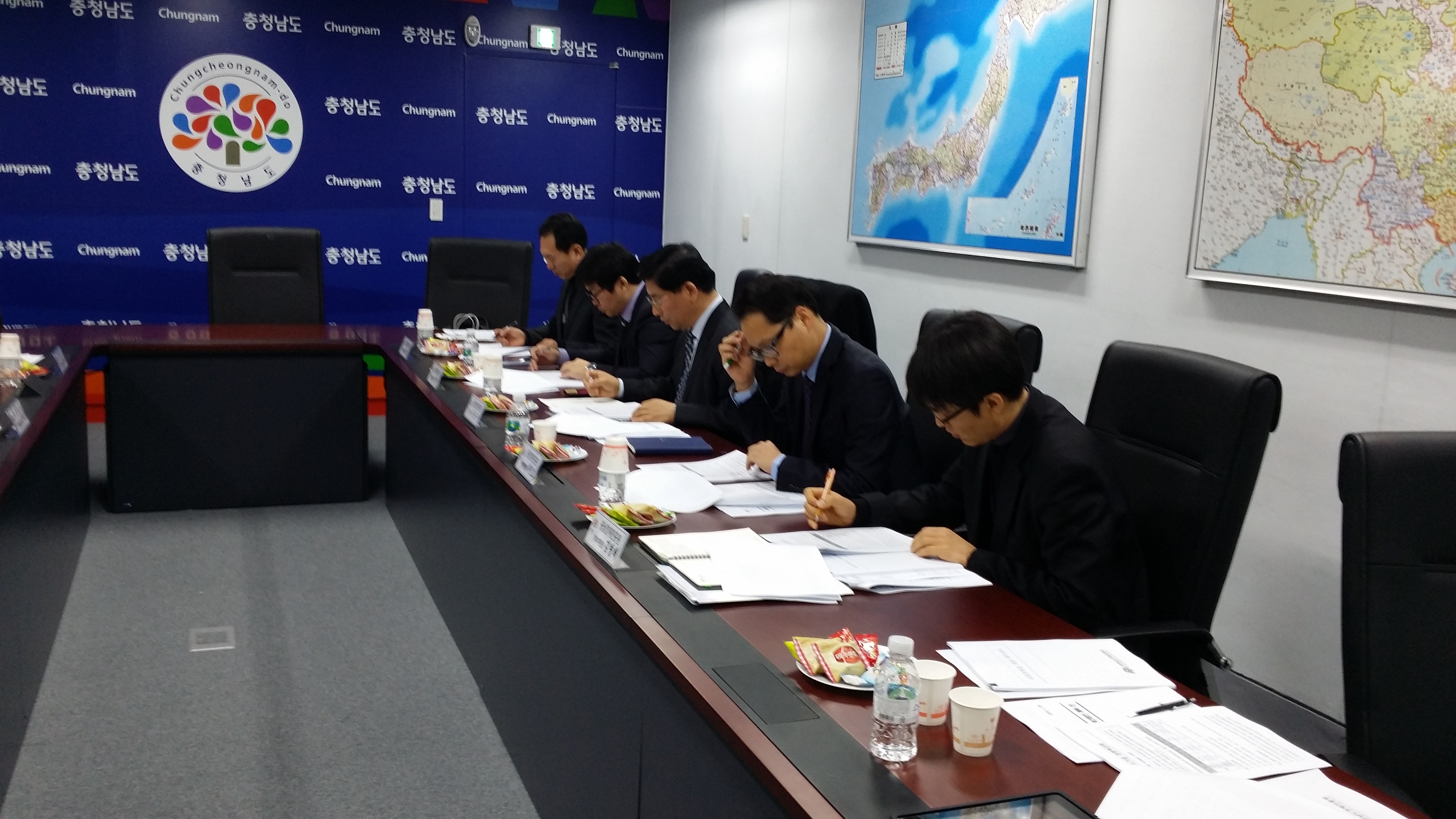 때 : 2015년 1월 29일, 10:00부터 곳 : 충남도청 회의실 참석자 : (진흥원) 원장, 경영전략실장 및 각 팀장, (도) 경제산업실장, 기업지원팀장 및 주무관 등 9명