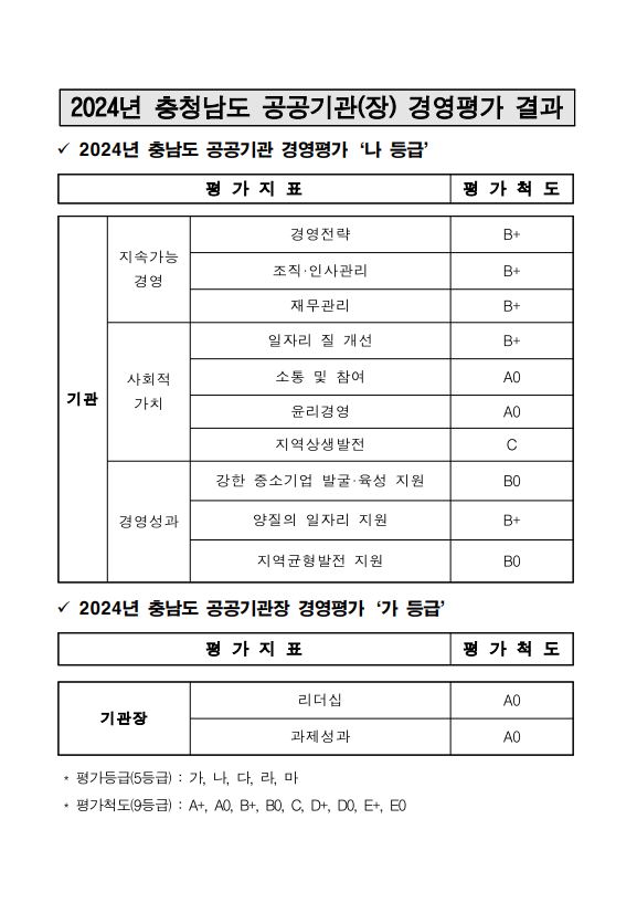 | 2024년 충청남도 공공기관 경영평가 결과 |