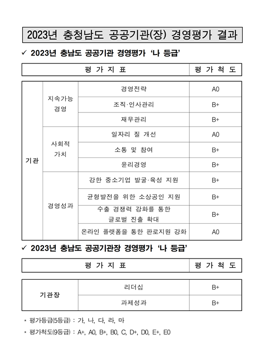 | 2023년도 충청남도 공공기관 경영평가 결과 |
