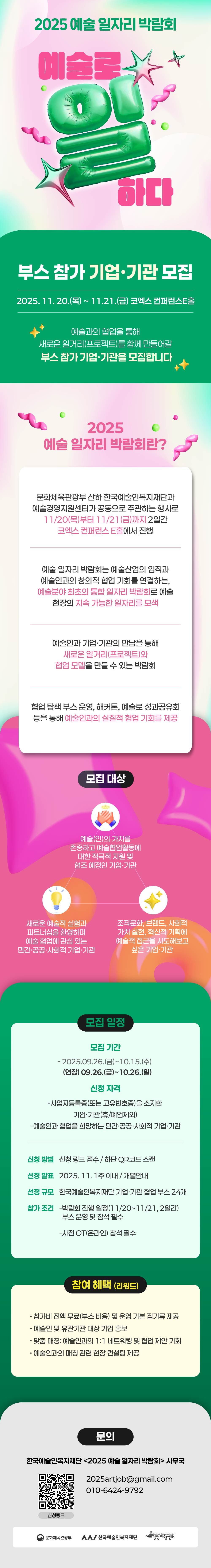 | [한국예술인복지재단] 2025예술 일자리 박람회 부스 참가 기업·기관 모집 안내 |