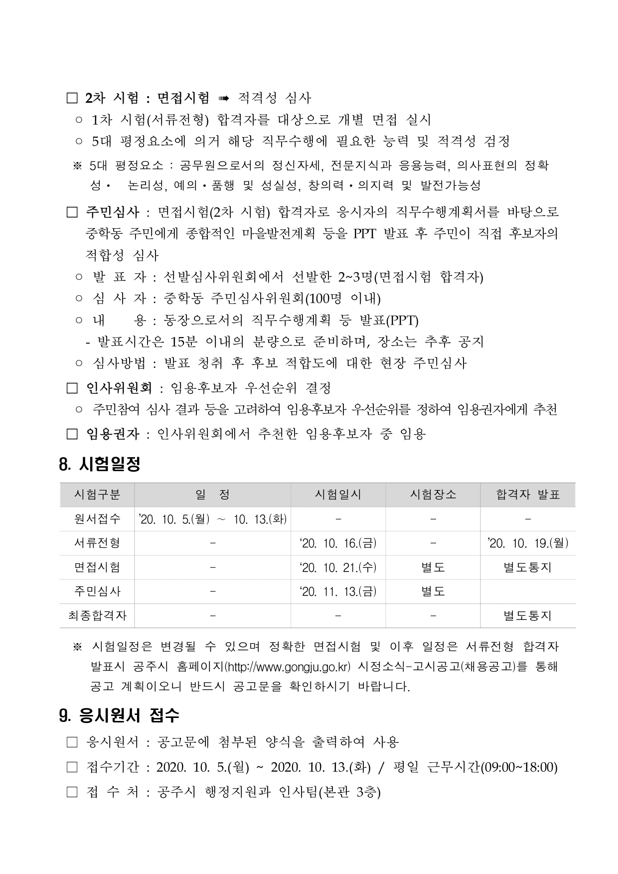[공주시] 개방형 직위(중학동장) 임용시험 시행계획 공고