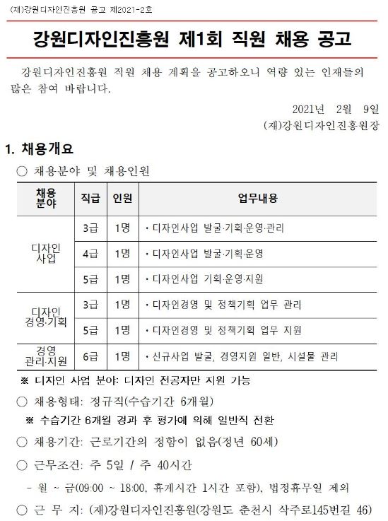 [강원디자인진흥원] 강원디자인진흥원 제1회 직원 채용 공고