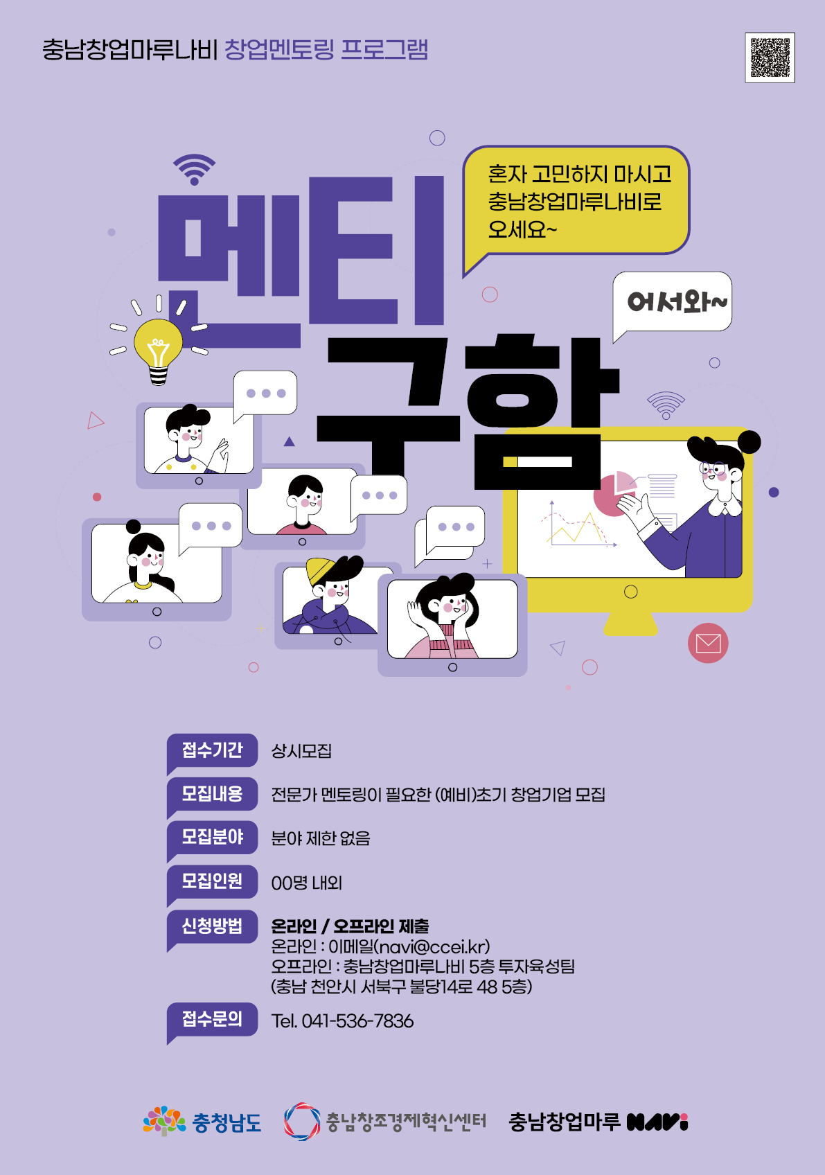 | [충남창조경제혁신센터] 충남창업마루나비 멘토링 프로그램 멘티 모집공고 |
