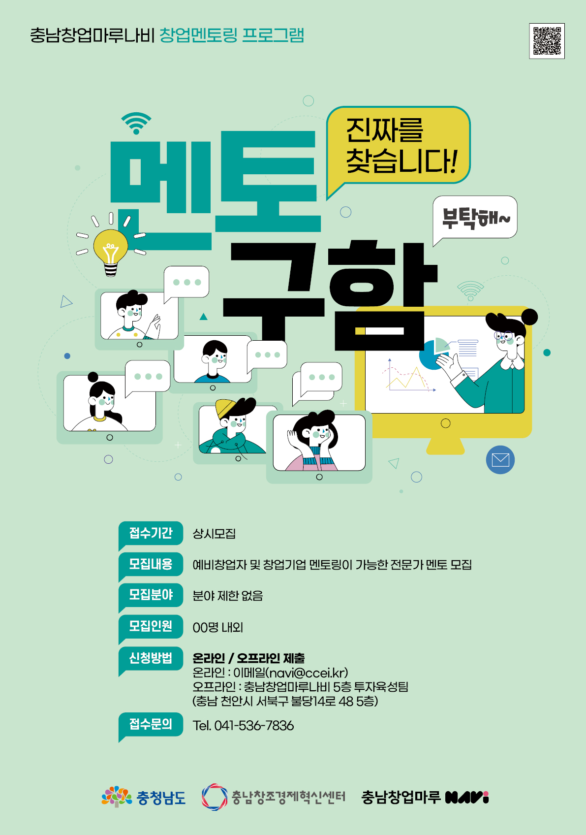 | [충남창조경제혁신센터] 충남창업마루나비 멘토링 프로그램 전문가 멘토 모집 |