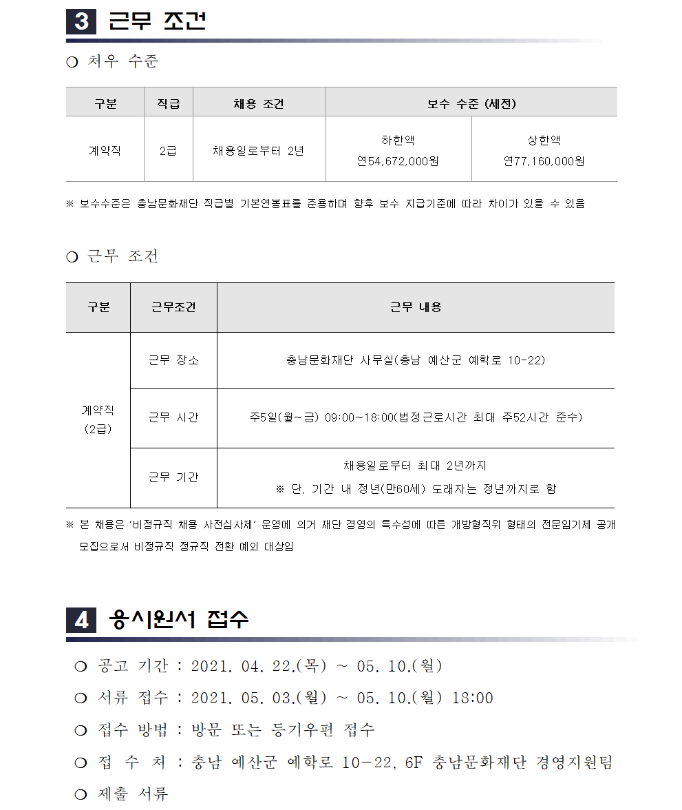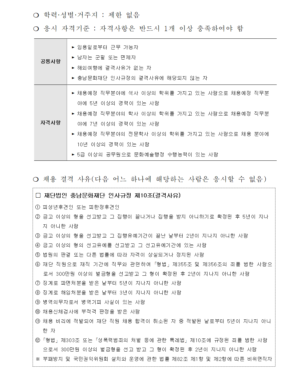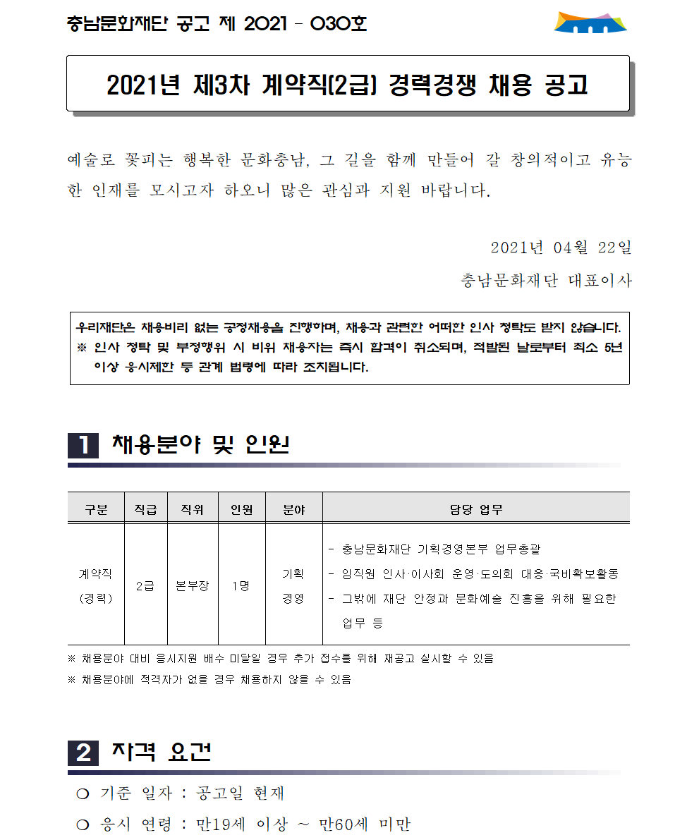 | [충남문화재단] 2021년 제3차 계약직(2급) 경력경쟁 채용 공고 |