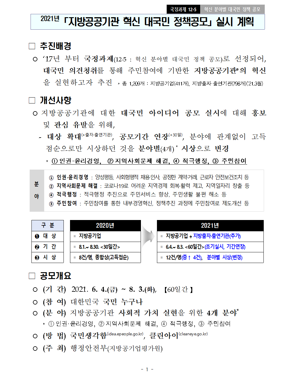 [붙임1] 2021년 지방공공기관 혁신 대국민 정책공모 실시 계획.hwp