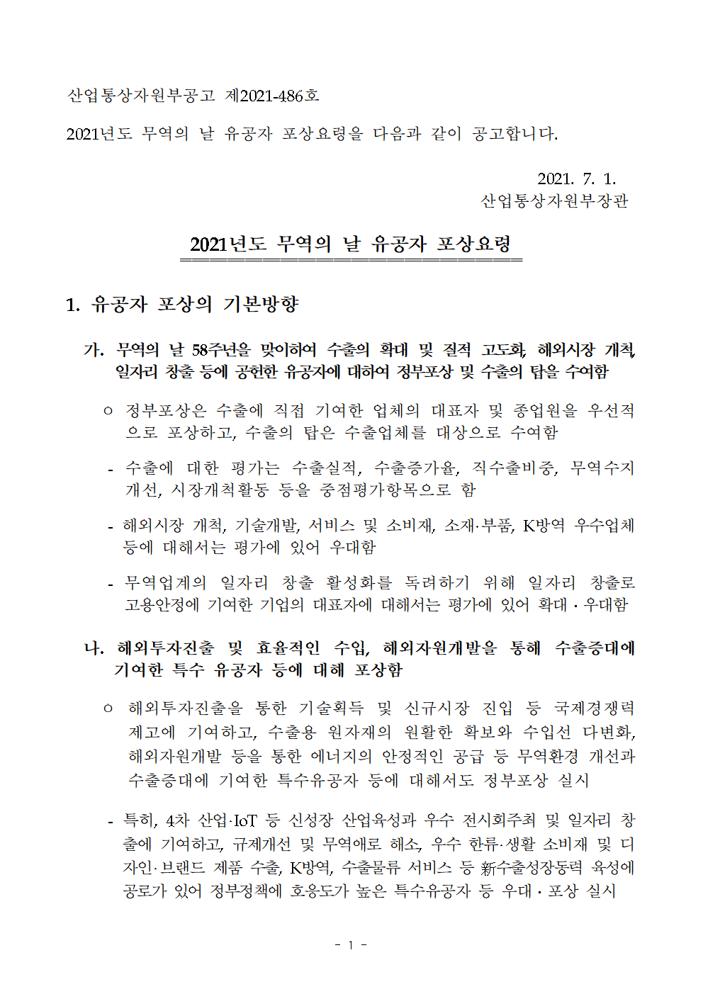 | [산업통상자원부] 2021년도 무역의 날 유공자 포상공고 안내 및 협조 요청 |
