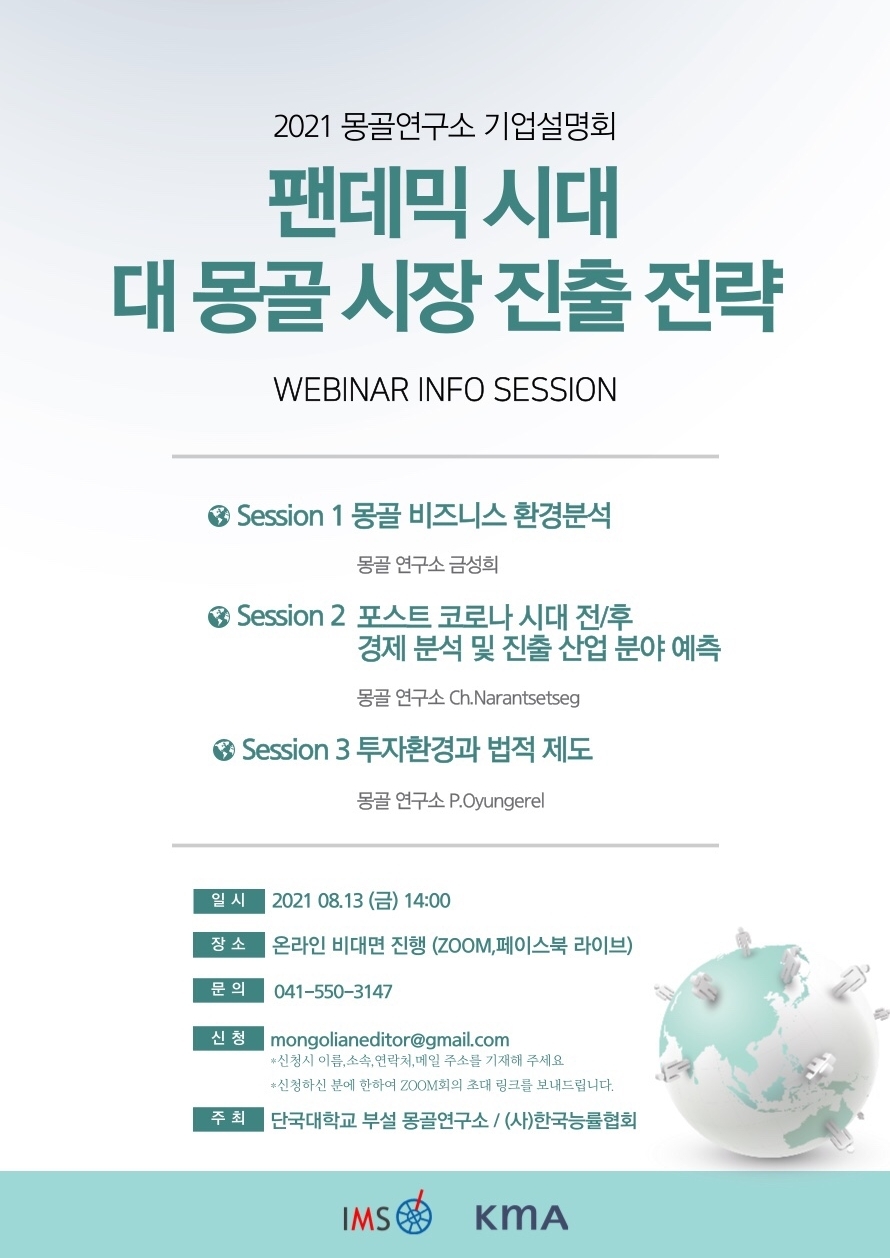 | [단국대학교] 2021 몽골연구소 기업설명회 팬데믹 시대 대 몽골 시장 진출 전략 |
