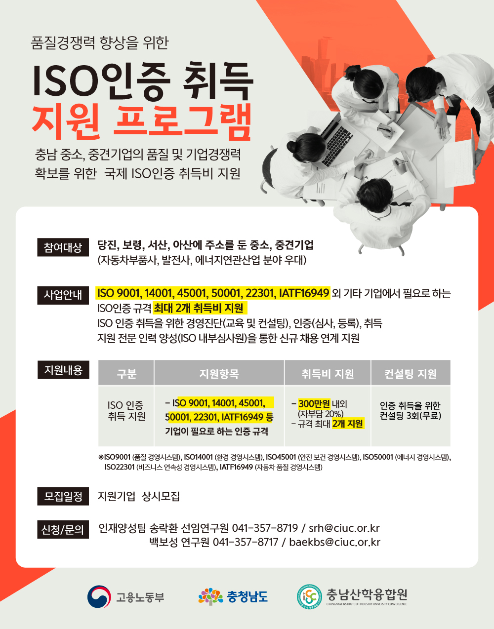 | [(사)충남산학융합원장] ISO인증 취득비 지원 참여기업 3차 모집 공고 |