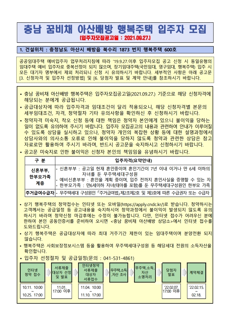 [충청남도] 충남 꿈비채 아산배방 행복주택 입주자 모집