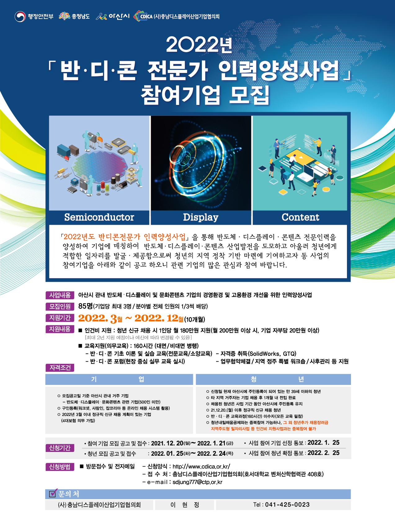 | [(사)충남디스플레이산업기업협의회] 2022년 반디콘 전문가 인력양성사업 참여기업 모집 |