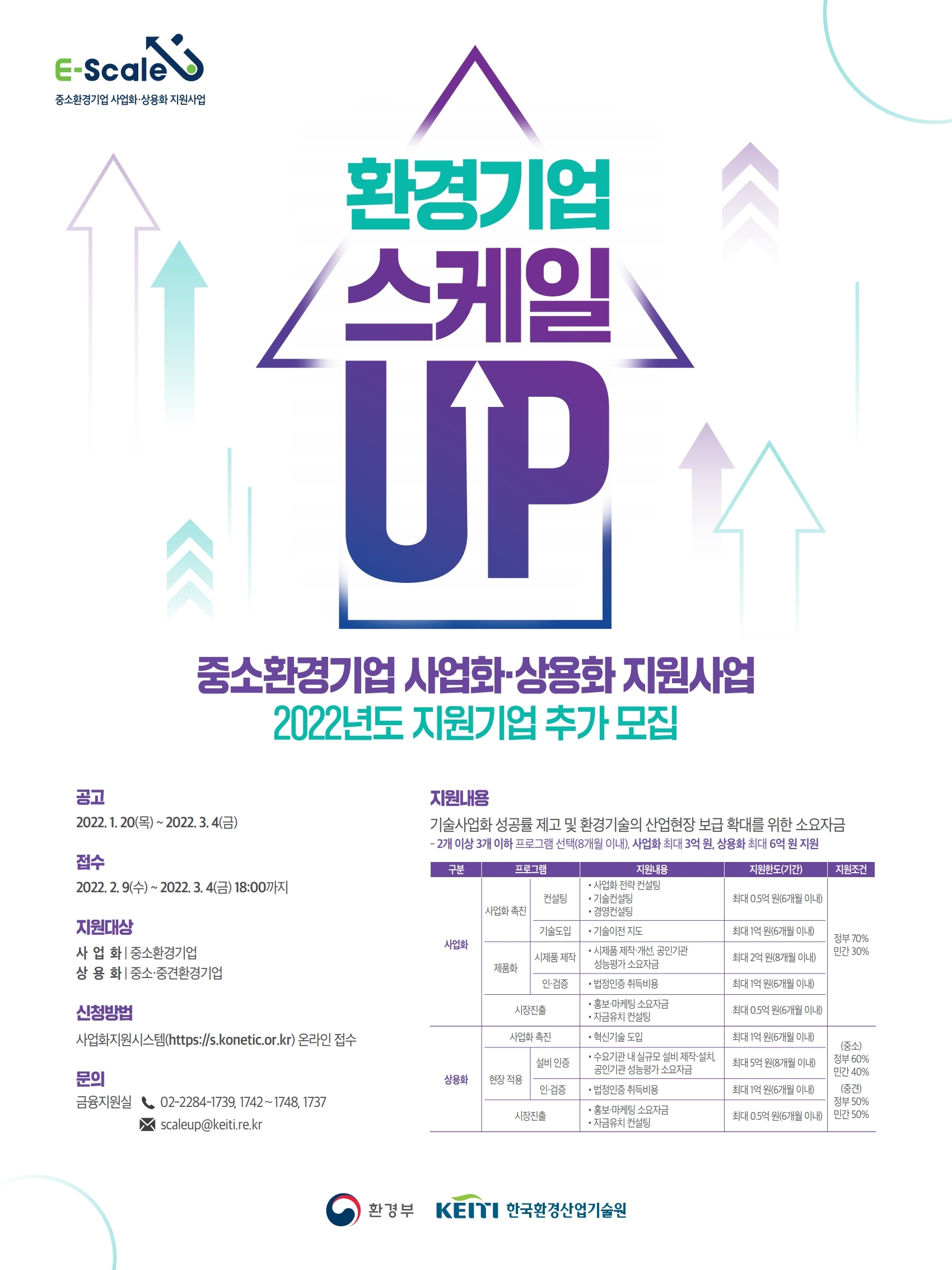 | [한국환경산업기술원] 2022년 중소환경기업 사업화 상용화 지원사업 추진계획 연장 공고 |
