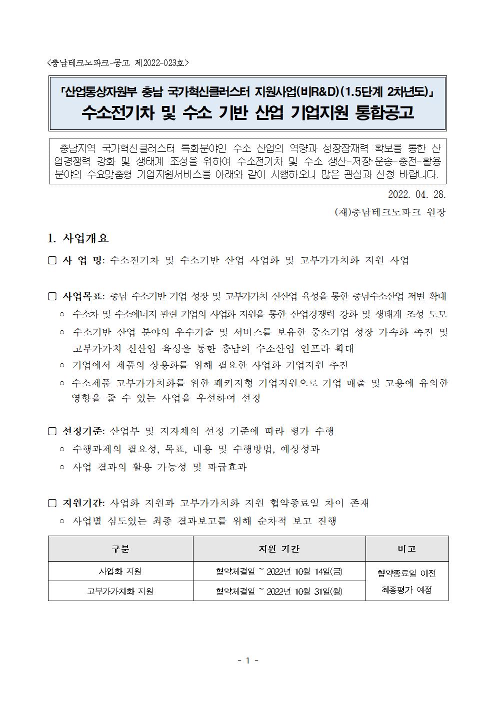 | [충남테크노파크] 2022년 충남 국가혁신클러스터 기업지원(사업화, 고부가가치화) 3차 공고 |