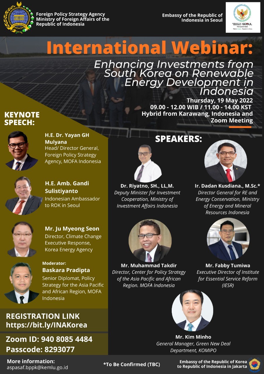 | [주인도네시아 대한민국 대사관] 2022년 인도네시아 신재생에너지 개발에 대한 한국 투자촉진 온라인 세니마 개최 |