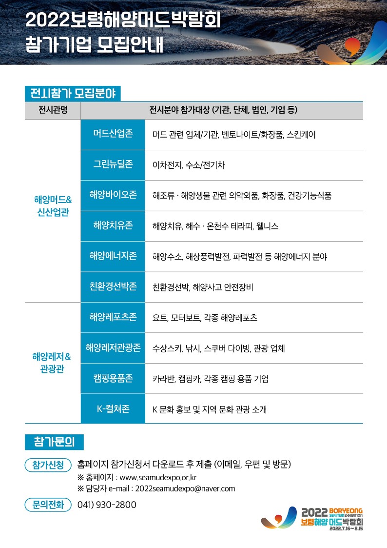 | [보령해양머드박람회조직위원회] 2022년 보령해양머드박람회 참가신청 안내 |