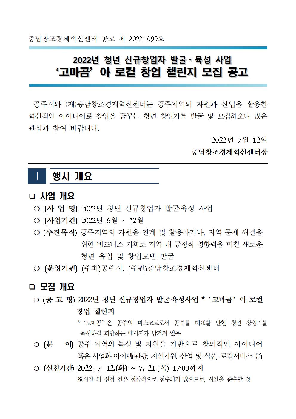 | [충남창조경제혁신센터] 2022년 청년 신규창업자 발굴육성사업 참여자 모집공고 |