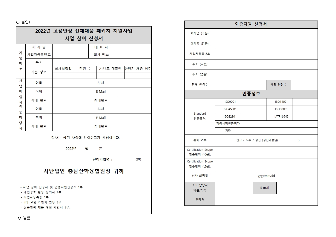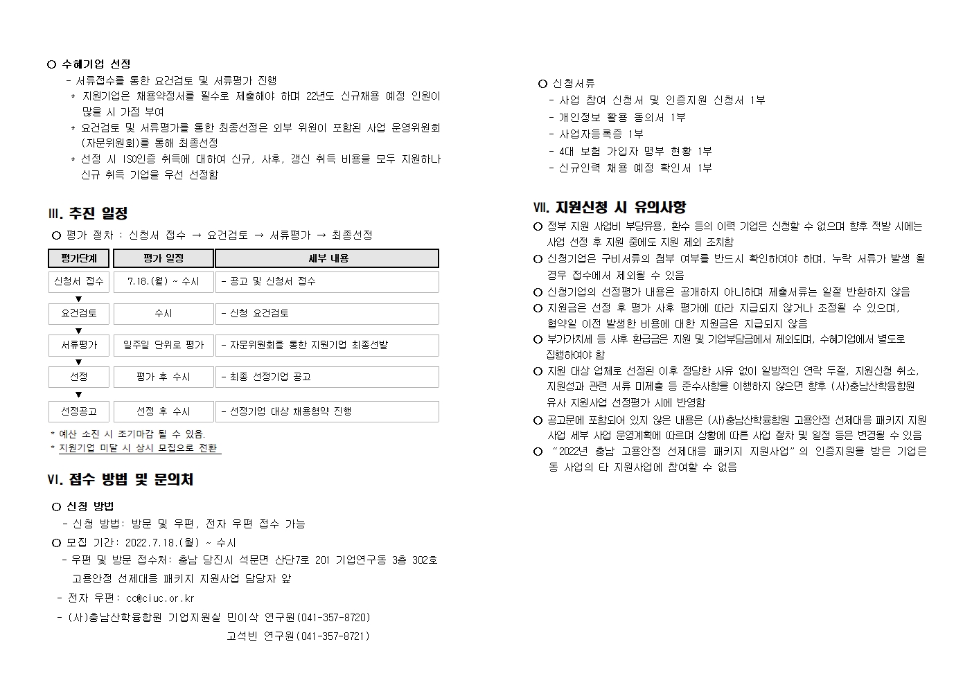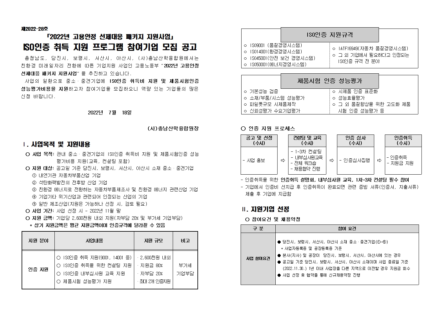 | [충남산학융합원] 2022년 고용안정 선제대응 패키지 지원사업 참여기업 상시 모집 공고 |