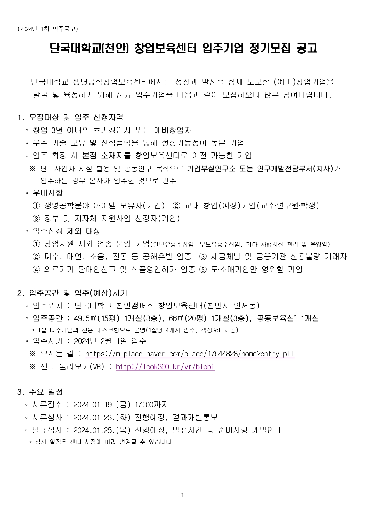 | 단국대학교(천안) 창업보육센터 입주기업 정기모집 공고 |