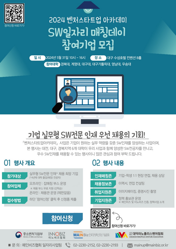 | [메인비즈협회] 2024 SW일자리 매칭데이 참여기업 모집 |