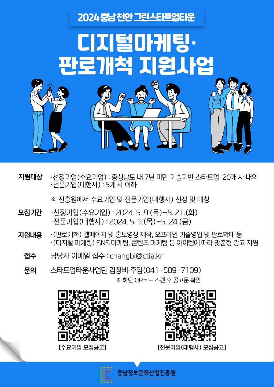 | [충남정보문화산업진흥원] 2024년 충남 천안 그린스타트업타운 디지털마케팅·판로개척 지원사업 모집공고 |