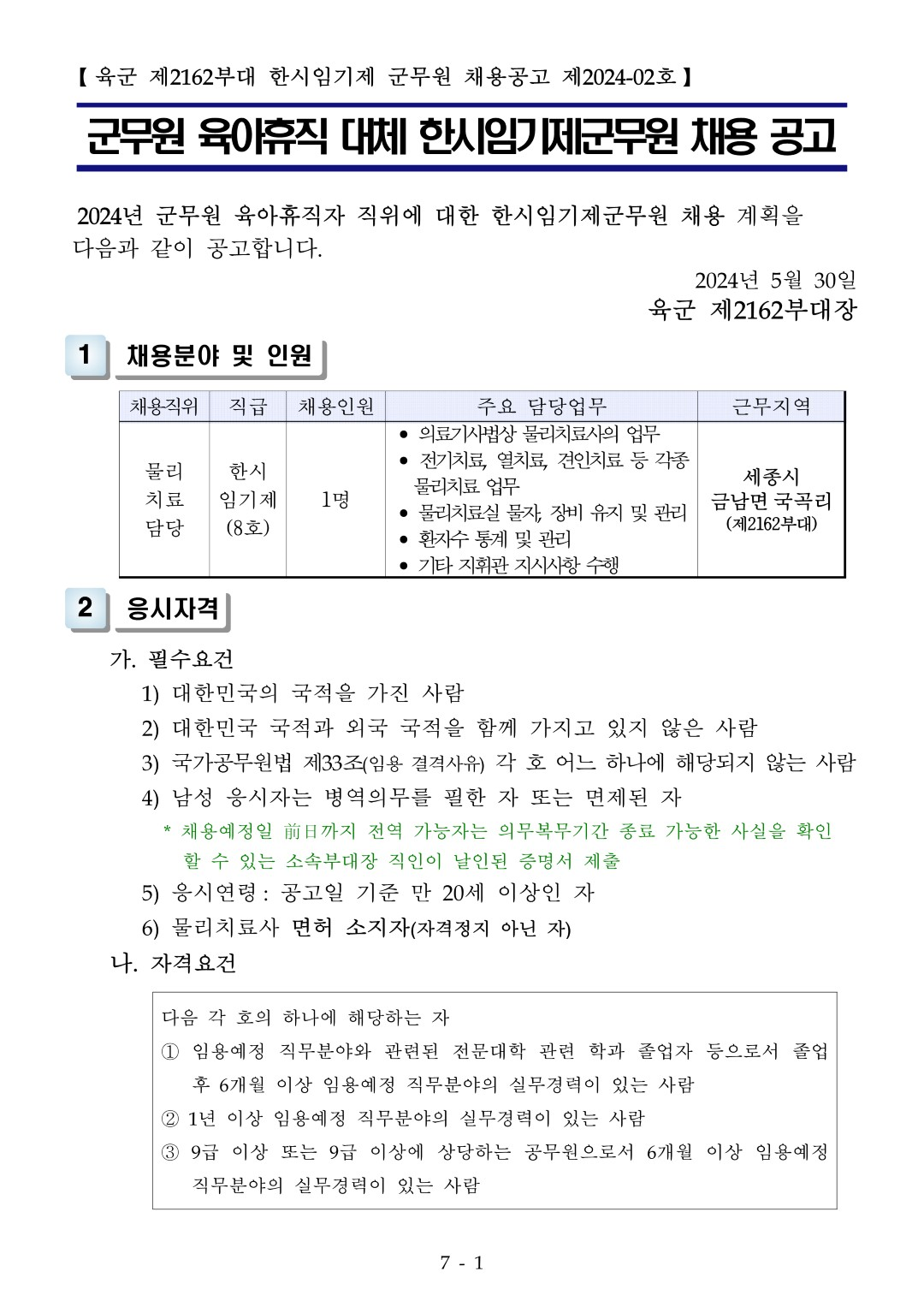 | [제32보병사단장] 한시임기제군무원 채용 공고 |