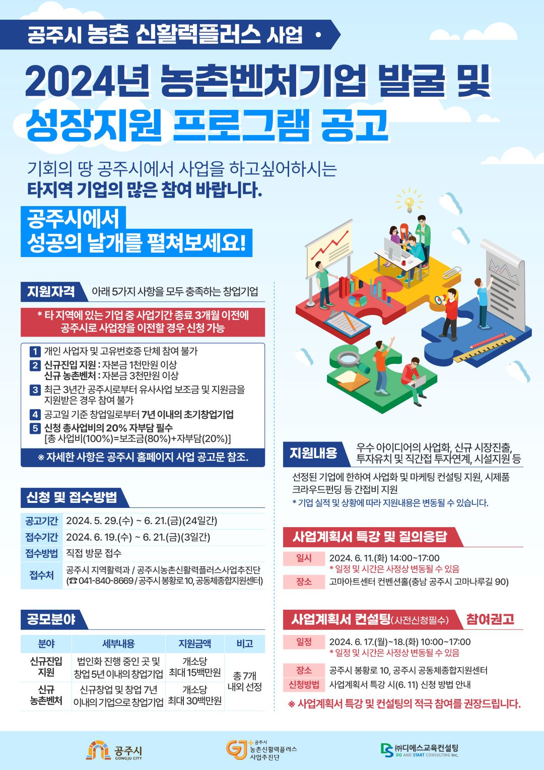 | 2024년 농촌벤처기업 발굴 및 성장지원 프로그램 참여기업 모집 공고 |