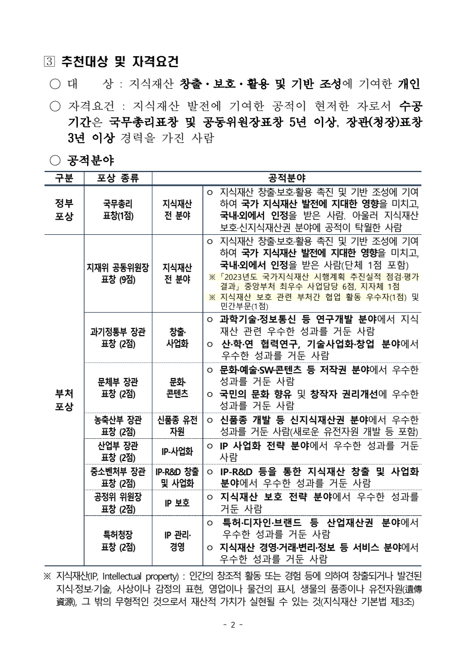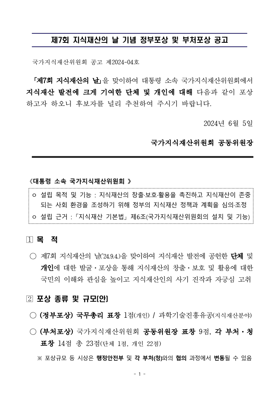 | [충청남도] 제7회 지식재산의 날 기념 정부포상 및 부처포상 공고 |
