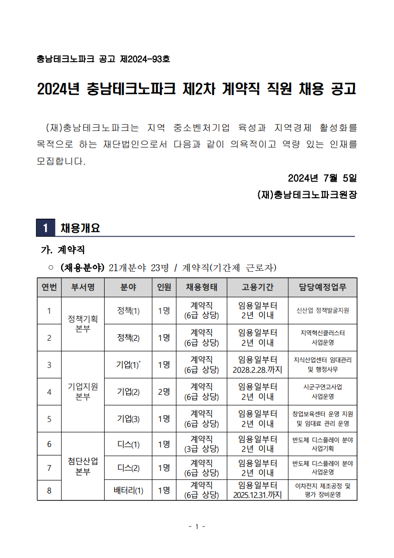 | [충남테크노파크] 2024년 제2차 계약직 채용 공고 |