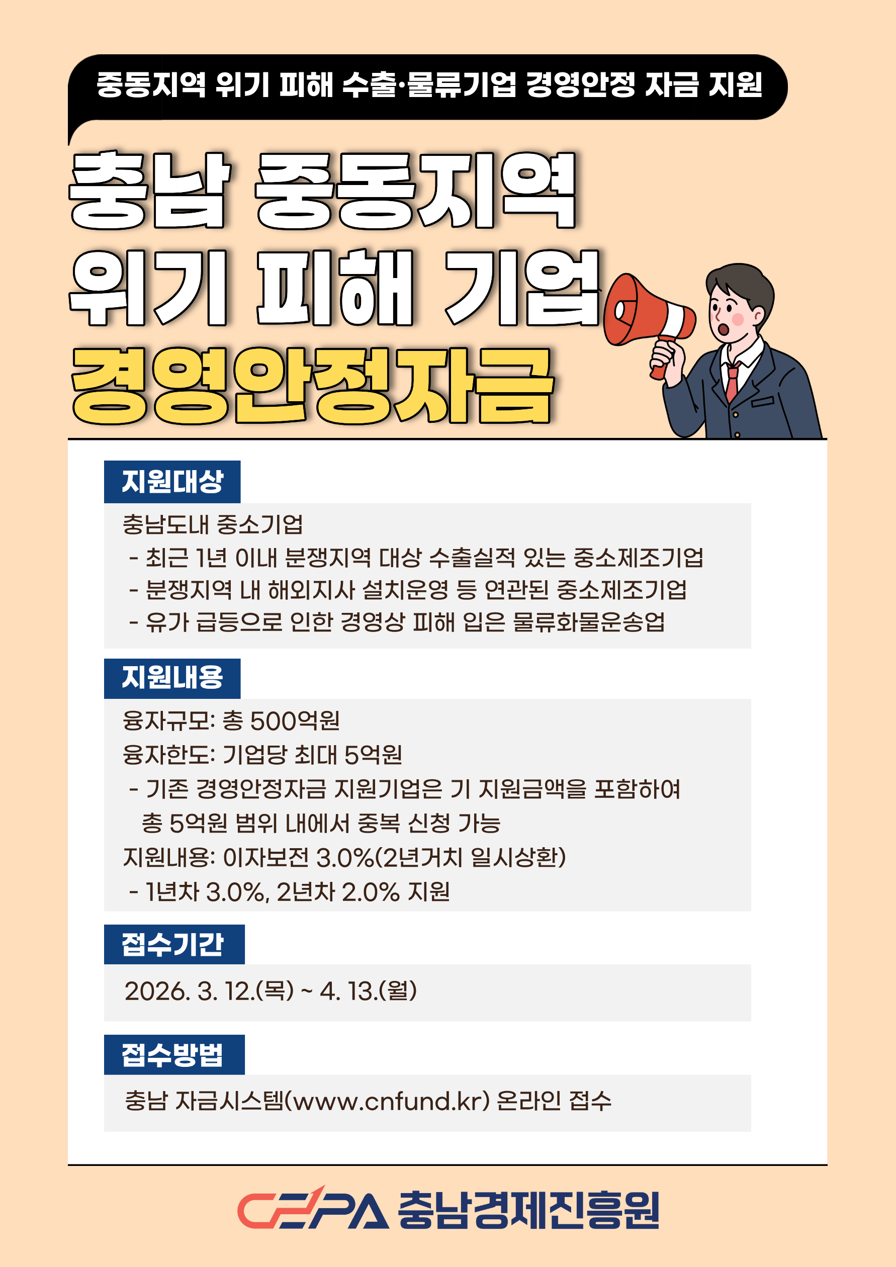 경영안정자금, 혁신형 자금 등충남 중소기업 경쟁력 강화를 위한 자금지원 안내