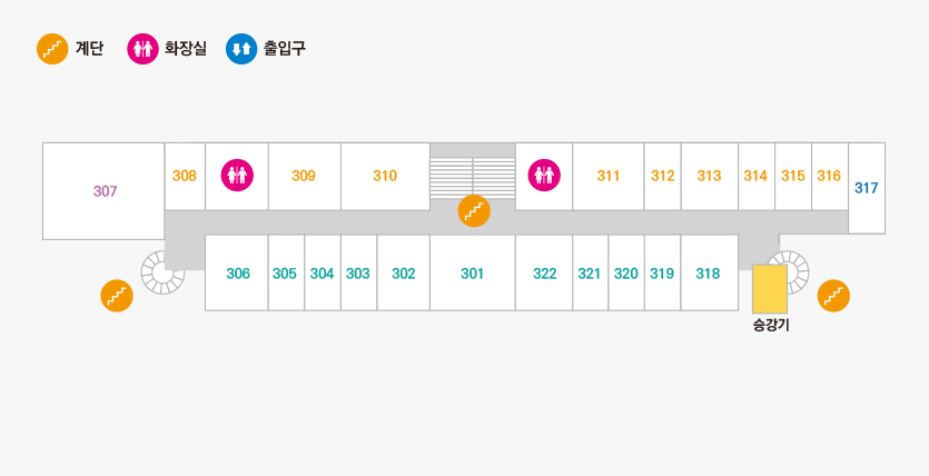 | 호수 | 전체면적(㎡/평) | 전용면적(㎡/평) | 공용면적(㎡/평) | 구분 | 호실명 | 대표자 | 사업내용 및 연락처 |